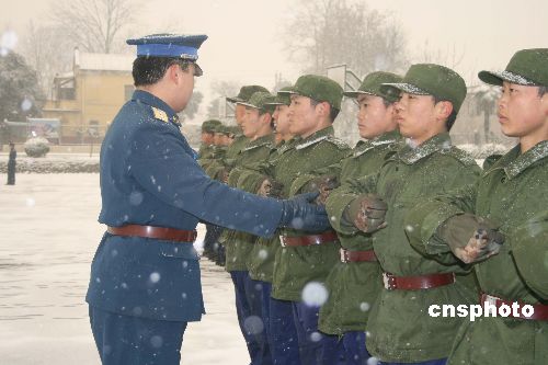 圖:空軍某部大雪紛飛礪新兵