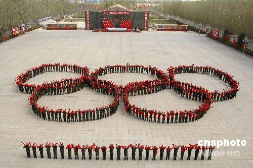 圖:中國(guó)高原汽車兵組奧運(yùn)五環(huán)