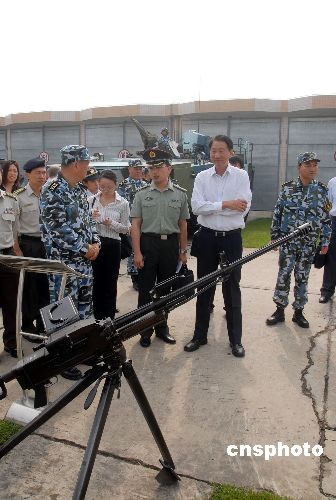 10月15日上午,新加坡國(guó)防部長(zhǎng)張志賢在廣東省湛江市觀看操作中國(guó)海軍陸戰(zhàn)隊(duì)輕武器。當(dāng)天,張志賢在海軍南海艦隊(duì)副參謀長(zhǎng)幺志樓少將的陪同下,來(lái)到中國(guó)海軍陸戰(zhàn)隊(duì)某旅營(yíng)區(qū)參觀訪問(wèn),了解了部隊(duì)基本建設(shè)情況,并參觀了部隊(duì)各式武器。張志賢表示,通過(guò)訪問(wèn)加深了對(duì)中國(guó)海軍陸戰(zhàn)隊(duì)的了解,期待新加坡軍隊(duì)同中國(guó)軍隊(duì)進(jìn)一步增進(jìn)交流和合作。中新社發(fā) 李滿青 攝