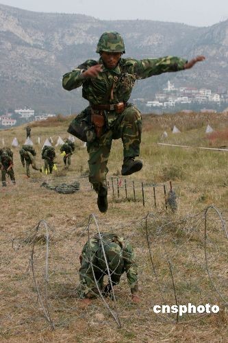 圖:濟南軍區(qū)偵察兵動態(tài)比武展開