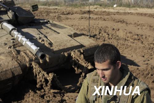 11月5日,在以色列靠近加沙地帶的邊境地區(qū),一名以軍士兵在坦克旁休息。