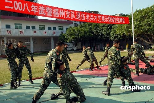 11月20日,武警福建福州支隊(duì)退伍兵專(zhuān)場(chǎng)招聘會(huì)在福州舉行。來(lái)自福州市的近20家用人單位來(lái)到招聘會(huì)現(xiàn)場(chǎng),推出了微機(jī)操作、保安、公安戰(zhàn)線警務(wù)人員、物業(yè)、駕駛員、廚師等300多個(gè)工作崗位,供350多名即將退伍的老兵選擇。招聘會(huì)現(xiàn)場(chǎng),退伍老兵通過(guò)軍事技能、電腦操作等才藝展示,面對(duì)面與用人單位溝通交流。中新社發(fā) 李濤 攝