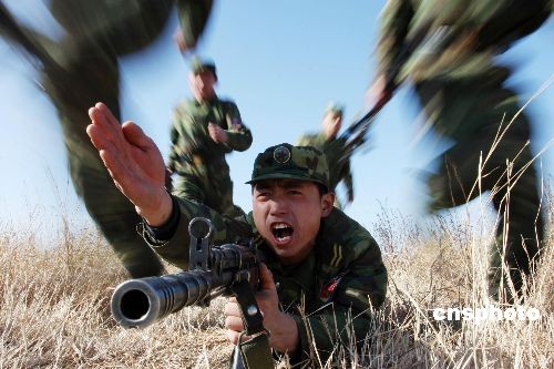 2008年12月25日,濟(jì)南軍區(qū)某部正在組織官兵進(jìn)行戰(zhàn)術(shù)訓(xùn)練。連日來,該部把官兵拉到野外生疏地域,著力開展嚴(yán)寒條件下的冬季野營(yíng)訓(xùn)練,全面鍛煉部隊(duì)在嚴(yán)寒條件下的整體作戰(zhàn)能力。中新社發(fā) 梁志杰 攝