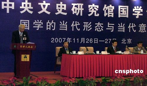 經(jīng)中國(guó)國(guó)務(wù)院批準(zhǔn),中央文史研究館國(guó)學(xué)論壇二十六日在北京舉行。論壇主題是:國(guó)學(xué)的當(dāng)代形態(tài)和當(dāng)代意義。共有全國(guó)文史研究館館員以及中國(guó)社會(huì)科學(xué)院、北京大學(xué)、中國(guó)人民大學(xué)國(guó)學(xué)專家,香港、澳門、臺(tái)灣地區(qū)專家學(xué)者五十人出席。中新社發(fā) 徐長(zhǎng)安 攝