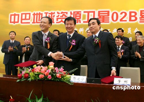 中國和巴西合作研制的中巴地球資源衛(wèi)星02B星,1月24日在北京正式交付給使用部門。中國航天科技集團空間技術(shù)研究院、中國發(fā)射測控系統(tǒng)部、中國資源衛(wèi)星應用中心三方簽署了02B星在軌交付證書。 中新社發(fā) 周兆軍 攝