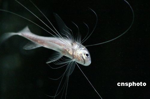 3月16日,“千手觀音”魚(yú)在上海海洋水族館展出。這種珍稀魚(yú)類(lèi)名叫長(zhǎng)指馬鲅,是該館最近引進(jìn)的。長(zhǎng)指馬鲅主要分布在南亞地區(qū)的海域中,腹部長(zhǎng)著很多細(xì)線(xiàn)狀的鰭條,俗稱(chēng)“千手觀音”。中新社發(fā) 穎慧 攝