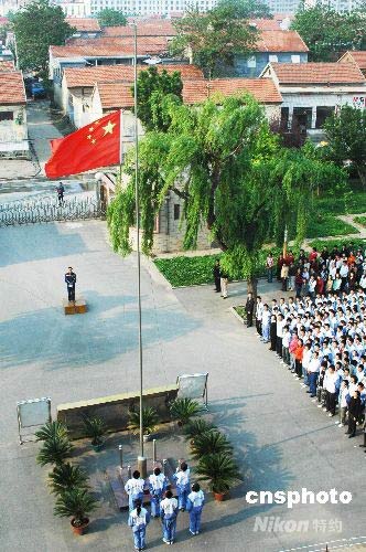 5月19日,山東鄒平縣實驗中學(xué)降半旗為四川地震中的遇難者致哀。國務(wù)院公告從19日到21日為全國哀悼日,各地降半旗致哀。中新社發(fā) 董乃德 攝