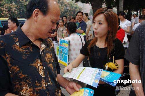 6月7日上午,中國(guó)高考開(kāi)始,在福州各高考考場(chǎng)外,不少推銷員不厭其煩地向等候考生的家長(zhǎng)們推介出國(guó)留學(xué)、外語(yǔ)培訓(xùn)、暑期游學(xué)、暑期補(bǔ)習(xí)輔導(dǎo)等業(yè)務(wù)。隨著高考的舉行,暑期即將到來(lái),“暑期經(jīng)濟(jì)”也隨之在社會(huì)生活中“翩翩起舞”。中新社發(fā) 鄭祚聲 攝