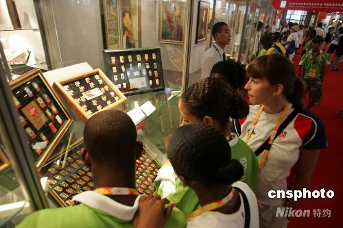 8月11日,奧林匹克青年營營員們參觀中國嘉德奧運專場拍賣會預(yù)展,小營員們在預(yù)展的紀(jì)念章展臺前專注觀看。本次拍賣會拍品將包括來自海內(nèi)外藏家的體育題材的藝術(shù)品、奧運郵品、奧運紀(jì)念品和收藏品三大門類近300件精品。這次拍賣的重頭之一是是以靳尚誼為代表的寫實畫派所創(chuàng)作的著名奧運人物肖像,其中包括《薩馬蘭奇》肖像、《羅格》肖像、《女排團體》畫像以及1984年至2000年五屆奧運會全體中國奧運冠軍和著名教練員的肖像。除此以外,多屆奧運會傳遞火炬,簽名球、簽名衫和與奧運相關(guān)的奧運紀(jì)念郵冊、紀(jì)念幣、珍貴照片、書籍等眾多精品也將亮相上拍。中新社發(fā) 楊可佳 攝
