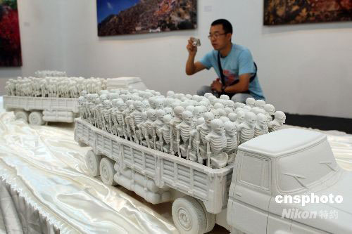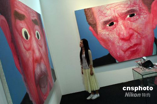 9月11日,正在舉行的2008上海藝術(shù)博覽會(huì),共有來(lái)自德國(guó)、意大利、美國(guó)、俄羅斯等20個(gè)國(guó)家和地區(qū)的140多家一流畫(huà)廊參展。本屆藝博會(huì)全部展示面積達(dá)到2萬(wàn)4千平方米,成為歷屆之最,不僅繼續(xù)“領(lǐng)跑”亞洲各大藝術(shù)博覽會(huì),同時(shí)也成為國(guó)際上規(guī)模最大的藝術(shù)博覽會(huì)之一。中新社發(fā) 湯彥俊 攝
