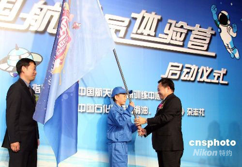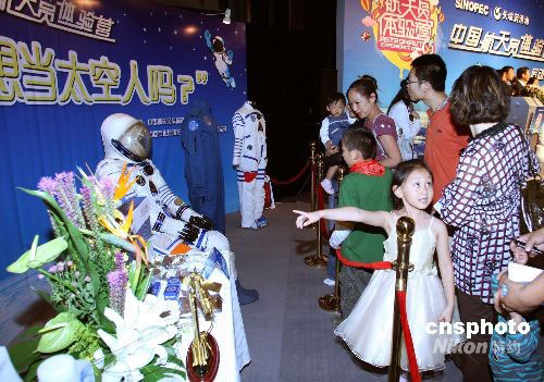 9月23日,“中國航天員體驗(yàn)營”活動(dòng)在北京天文館舉行啟動(dòng)儀式,現(xiàn)場展出的航天員專用出征服倍受關(guān)注。體驗(yàn)營將通過全民海選方式選拔一批航天愛好者,于11月14日在中國航天城展開為期三天的體驗(yàn)活動(dòng)。獲選的營員將首次走進(jìn)神七航天員的訓(xùn)練生活,體驗(yàn)真實(shí)的太空訓(xùn)練科目,一圓航天夢(mèng)想。中新社發(fā) 廖文靜 攝