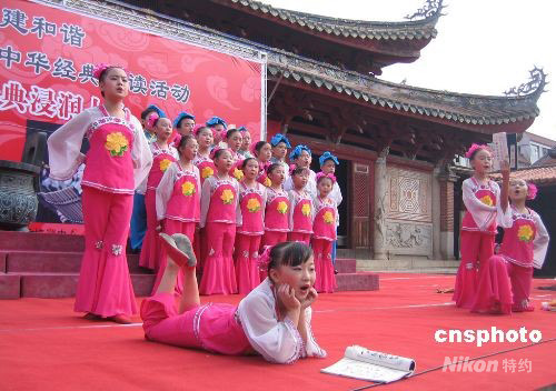九月二十九日上午,為紀念孔子誕辰二千五百五十九周年,一場大型的中華經典誦讀活動在福建泉州府文廟廣場舉行,旨在弘揚和傳承中華優(yōu)秀民族文化,倡導尊師重教風尚。中新社發(fā) 黃瑤瑛 攝