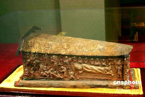 圖為從興隆塔地宮出土被專家鑒定為國家一級(jí)文物的鎏金銀棺。