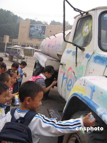 10月21日,長(zhǎng)沙世界之窗舉行的“快樂秋游--做一天搗蛋的孩子”吸引了眾多小學(xué)生參與。平日里的乖孩子們“亂喊亂叫”、“亂摔亂打”、“亂涂亂畫”,肆無忌憚地把心中壓力和情緒釋放出來。中新社發(fā) 肖前輝 攝