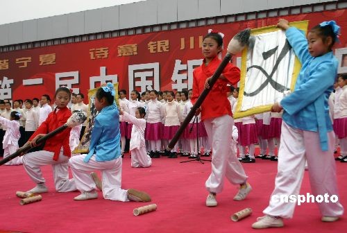 2008年11月12日上午,“回歸詩教傳統(tǒng)、重溫訓(xùn)蒙養(yǎng)正——第二屆中國(guó)銀川音樂詩歌節(jié)”在寧夏首府銀川開幕。 本屆詩歌節(jié)以“和諧寧夏、詩意銀川”為主題,以“喚醒詩教、訓(xùn)蒙養(yǎng)正”為主要內(nèi)容;顒(dòng)主辦方希望以誦讀表演的形式,通過誦讀中華經(jīng)典詩文,傳播民族優(yōu)秀文化,展示中國(guó)傳統(tǒng)詩教文化的風(fēng)采和詩歌的魅力。中新社發(fā) 蘆河 攝