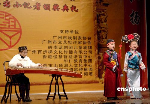一月十七日,首屆廣東少兒國學(xué)朗誦大賽總決賽暨2008年度廣州“十佳”中國小記者頒獎典禮在廣州舉行。來自香港、廣州、佛山、惠州等地的六十多名少兒選手參加,朗誦的國學(xué)內(nèi)容包括三字經(jīng)、論語、古代優(yōu)秀散文片段及唐詩、宋詞等。中新社發(fā) 劉衛(wèi)勇 攝