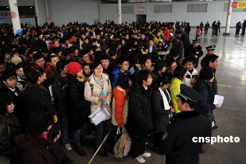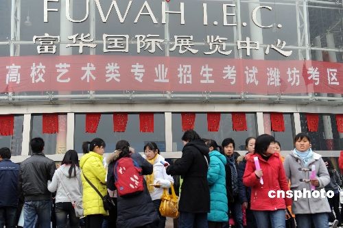 2009年2月4日,在山東濰坊富華國際展覽中心“藝考濰坊報名點”,參加2009年省外院校藝術專業(yè)考試的考生正在排隊報名。2009年藝考將于2月5日正式開考,歷時半個月。據(jù)了解,今年藝考山東省共報名96000人左右,濰坊市報名11000余人。中新社發(fā) 王志德 攝