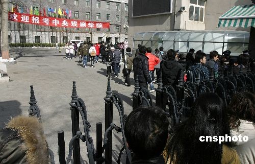2009年2月20日,中央戲劇學院表演系初試開始。中央戲劇學院表演系今年招生人數(shù)為50人,比去年少了25人。中新社發(fā) 魯谷 攝