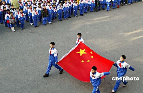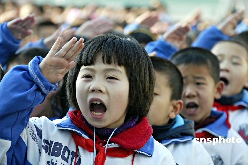 3月1日,小學生在學校的開學典禮升旗儀式上高唱《國歌》。遼寧丹東中小學生告別了寒假,開始新學期的生活。中新社發(fā) 陳浩浩 攝