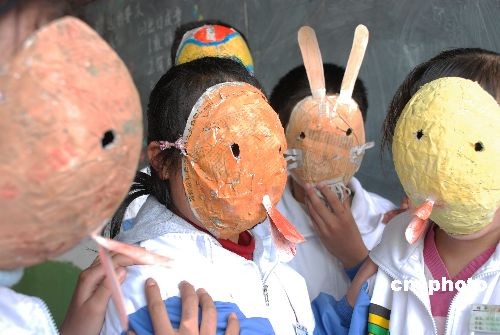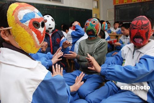 3月16日,山東鄒平縣實(shí)驗(yàn)中學(xué)的學(xué)生用自制的面具表演校園生活自編劇。學(xué)生們用舊報(bào)紙?jiān)诔錃鈿馇蛏辖?jīng)過糊紙、描彩、勾畫、裁切等步驟自制個(gè)性面具,并進(jìn)行展示評(píng)比,以小組為單位,以學(xué)生身邊所見所聞為表演題材自編短劇在課堂上展演。據(jù)悉,該校成立機(jī)器人、繪畫、舞蹈、表演、攝影等各種創(chuàng)新活動(dòng)小組,以培養(yǎng)學(xué)生動(dòng)手能力和創(chuàng)新能力。中新社發(fā) 董乃德 攝