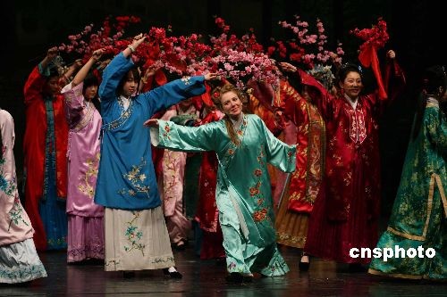 3月27日,來(lái)自北京中加學(xué)校的學(xué)生們和外籍教師共臺(tái)演出中國(guó)古典文學(xué)劇目《紅樓夢(mèng)》片段,共同慶祝北京中加學(xué)校建校十二周年。包括中外來(lái)賓、家長(zhǎng)代表及全校師生1700多人參加了校慶活動(dòng)。中加學(xué)校是北京市第一所實(shí)施普通高中教育的中外合作新型學(xué)校,合作辦學(xué)的雙方是北京師范大學(xué)附屬實(shí)驗(yàn)中學(xué)與加拿大紐賓士域省教育部和加拿大加皇國(guó)際教育投資集團(tuán)。中新社發(fā) 張宇 攝