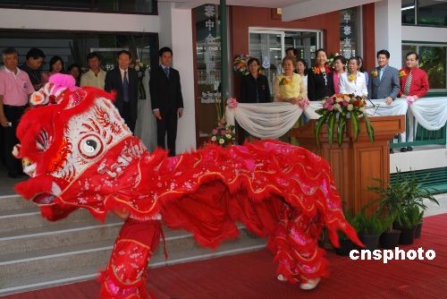 三月三十一日,位于泰國(guó)北部毗鄰清邁的南邦府嘎啦婭尼中學(xué)校園成為漢語(yǔ)和中國(guó)文化的舞臺(tái),當(dāng)?shù)氐暮⒆觽冇昧骼闹形,向遠(yuǎn)近的客人,展示著豐富多彩的中國(guó)文化技能,如舞獅子、剪紙、毛筆書(shū)法、太極劍等。來(lái)自北部各府以及曼谷的多所學(xué)校通力合作,將嘎啦婭尼的孔子課堂成立活動(dòng)搞得有聲有色。中新社發(fā) 顧時(shí)宏 攝