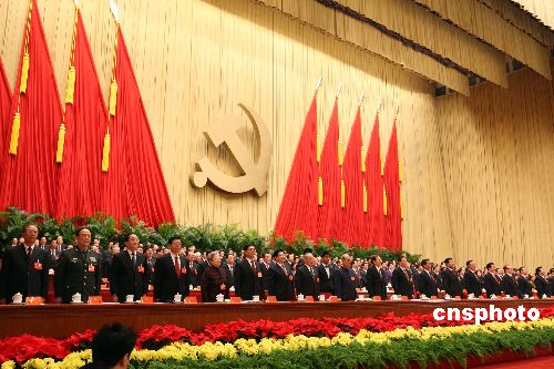 十月二十一日,中國共產(chǎn)黨第十七次全國代表大會在北京人民大會堂隆重閉幕。中新社發(fā) 毛建軍 攝