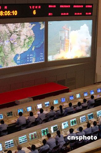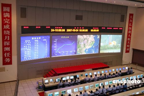 圖:北京航天飛控中心監(jiān)控“嫦娥一號”發(fā)射