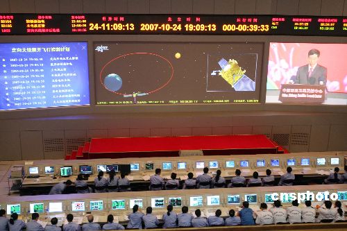 圖:北京航天飛控中心監(jiān)控“嫦娥一號(hào)”發(fā)射(2)