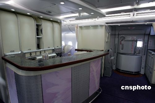 ·空中客車A380廣州展示內(nèi)部裝飾 設(shè)有浪漫酒吧區(qū)