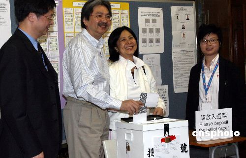 ·香港區(qū)議會選舉舉行 曾蔭權(quán)吁市民踴躍投票(圖)