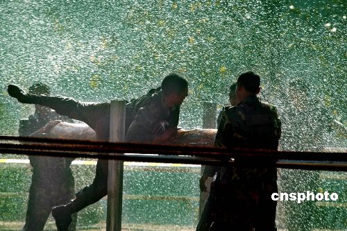 圖為中國士兵訓(xùn)練旋轉(zhuǎn)木馬。