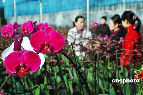 12月30日,客商在鄒平縣好生鎮(zhèn)“十里花卉一條街”選購鮮花。佳節(jié)來臨,山東鄒平縣好生鎮(zhèn)花農(nóng)引進(jìn)的蝴蝶蘭、水仙等鮮花,在人工調(diào)控溫度、濕度、增減日光照射等多項(xiàng)措施下,趕在新年、春節(jié)等節(jié)日綻放,備受市場(chǎng)青睞,也讓花農(nóng)錢袋子鼓起來。中新社發(fā) 董乃德 攝