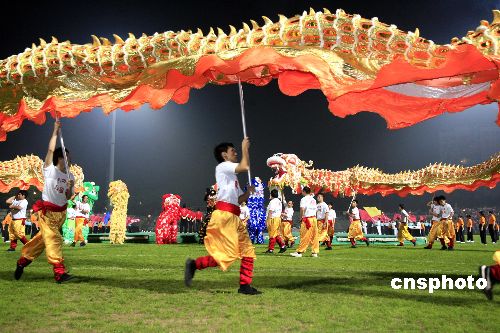 圖為現(xiàn)場龍獅齊武,中華自強(qiáng)之聲不絕于耳。