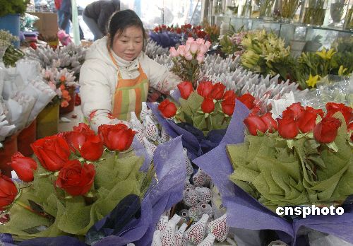 圖:安徽滁州花卉店備戰(zhàn)“情人節(jié)”