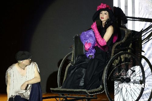 圖為模特在發(fā)布會(huì)上乘黃包車登臺(tái)表演。中新社發(fā) 盛佳鵬 攝