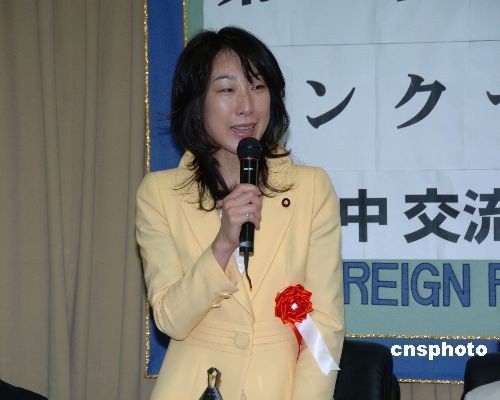 菊田真紀(jì)子在東京舉行的第三屆日本人漢語(yǔ)征文比賽頒獎(jiǎng)典禮上致詞。中新社發(fā) 段躍中 攝