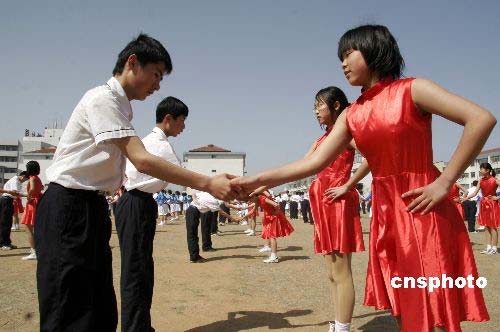 圖:山東威海舉辦迎奧運校園集體舞大賽