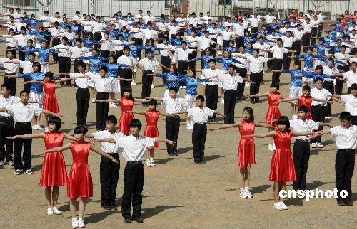圖:山東威海舉辦迎奧運校園集體舞大賽(4)