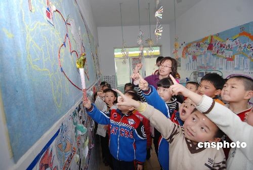 4月8日,山東濰坊市奎文區(qū)新華幼兒園師生正在自己親手制作的奧運圣火線路圖前,喊出對圣火的祝福。令世人矚目的奧運圣火傳遞,同樣也牽動著孩子們的心,山東濰坊市奎文區(qū)新華幼兒園的孩子們在老師的指導下制作了一面“奧運墻”,內容有奧運圣火的傳遞路線,還有奧運會運動項目圖解等,孩子們每天都關注著奧運圣火的傳遞,關注著奧運。作者: 王立軍
