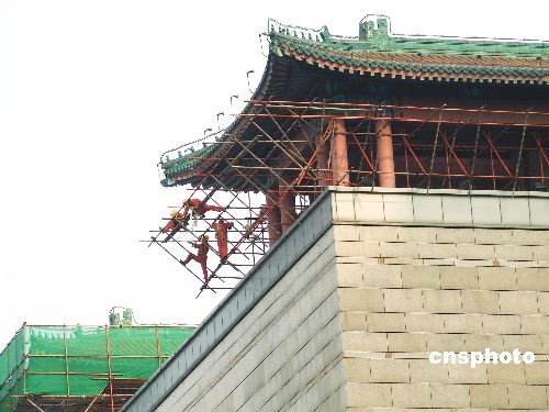 4月9日,北京西站搭起綠網(wǎng)準(zhǔn)備進(jìn)行環(huán)境“美容”,北京西站將以全新面貌接待中外游客迎接奧運(yùn)會的到來。此次環(huán)境整治工程涉及景觀照明、外墻清洗、古建油飾等項(xiàng)目。作者: 追影
