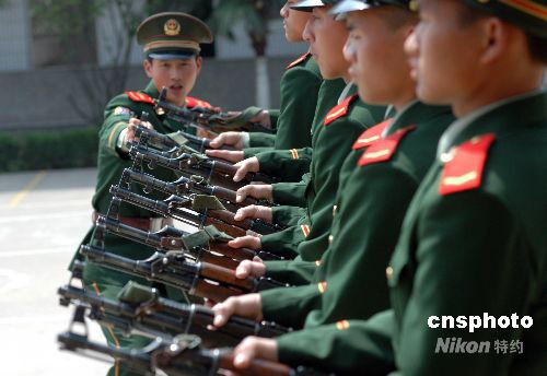 4月10日,武警南京支隊(duì)官兵在進(jìn)行訓(xùn)練。連日來,南京武警官兵積極備戰(zhàn)奧運(yùn)安保工作,通過隊(duì)列及各種禮儀、處置突發(fā)事件等方面進(jìn)行嚴(yán)格正規(guī)的軍政素質(zhì)訓(xùn)練,從而不斷提升執(zhí)勤官兵形象,為維護(hù)一方穩(wěn)定做貢獻(xiàn)。中新社發(fā) 唐占軍 攝