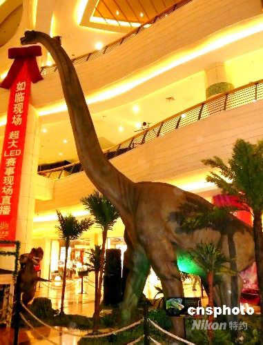 4月11日,為慶祝中國(guó)首座“全生活廣場(chǎng)”揚(yáng)州京華城開業(yè)一周年,“喜迎周年慶 重返侏羅紀(jì)”大型恐龍展在該城開幕。中新社發(fā) 崔佳明 攝