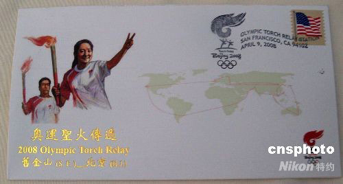 圖:華人設計師魏進發(fā)設計圣火傳遞舊金山首日封(2)