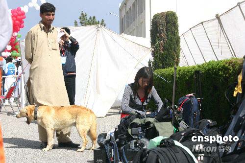 圖為巴基斯坦警察在舉行起跑儀式和慶典儀式的巴基斯坦體育中心外檢查媒體記者的器材。作者: 沈晨