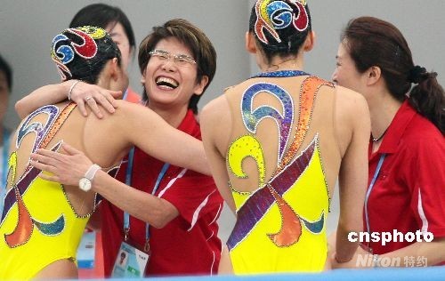 圖為賽后兩姐妹與日籍主教練擁抱慶祝。中新社發(fā) 富田 攝