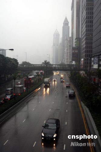 香港發(fā)出三號(hào)強(qiáng)風(fēng)及紅雨警告 市區(qū)狂風(fēng)暴雨(2)
