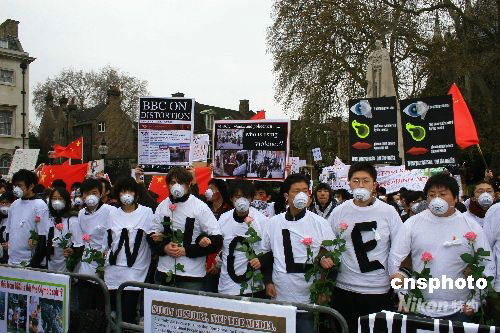 當(dāng)?shù)貢r(shí)間19日,在英國學(xué)習(xí)、工作和定居的華人約2000多人在倫敦舉行靜默集會(huì),抗議包括英國廣播公司(BBC)在內(nèi)的西方媒體對(duì)中國所做的不公正的、片面的報(bào)道。圖為在英國議會(huì)大廈對(duì)面舉行的靜默集會(huì)現(xiàn)場。 中新社發(fā) 李鵬 攝