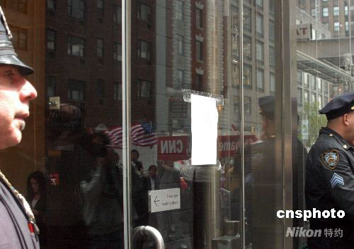 數百名華人及留學生二十一日在美國有限電視新聞網(CNN)駐紐約辦公樓附近游行,抗議CNN辱華報道,并將抗議書貼在CNN門前。中新社發(fā) 李靜 攝