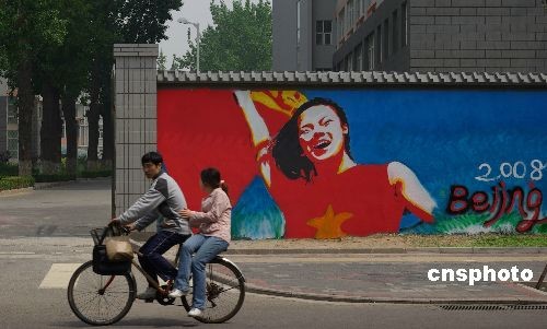 圖:首面奧運(yùn)文化墻在京街頭亮相(2)